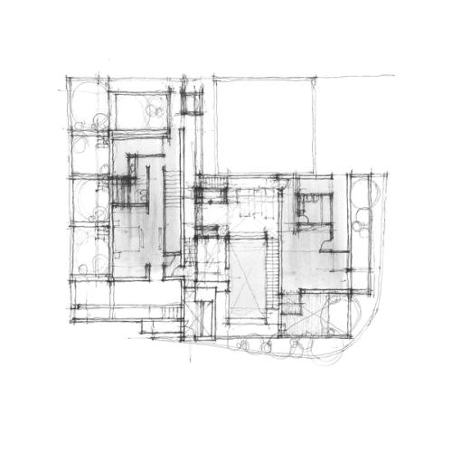 The site is located in Badr al-Jadeedah, in the northwestern suburb of the capital city of Jordan, Amman. It is a proposal for single-family house designed on a site area of 500 sqm, overlooking the lush oak trees community that this location is known for. The project predominantly endeavors to create an intimate spatial dialogue internally, and yet another formal discussion with the terrain. Such discourses informed a U-shaped spatial arrangement of the house around a swimming pool, an extension of the Kitchen space and the epicenter of the house, and another formal configuration of two main masses overlooking and opening up to the view, each with its own courtyard. These masses together function as a visual passage that frames the opposite view for any prospective rear neighboring developments. Metaphorically, the house which was commissioned by the Mrs., who spends most of her time in the kitchen, demanded that the kitchen opens up onto an intimate open space. Hence, as she herself binds the family together, her own space too becomes a central fragment that binds the two masses and their inherent spaces together.