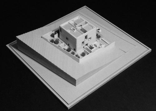The form shuns away from any novelty, it reintroduces traditional Jordanian forms to modern living; a strive for Timelessness by utilizing the simplest of forms for architecture that can belong to any period. The cubic shape came as an architecturally solid and defined geometrical solution to an otherwise parallelogram-shaped site. The square-shaped floors implied that all functions and voids happen within the constraints of their perimeter, entailing that all spaces, apertures, and voids are carved out from one concrete monolith. The one-meter-thick perimeter walls accentuate such material expression, they have aesthetic and structural duties, all compressed in one symbiotic material entity.