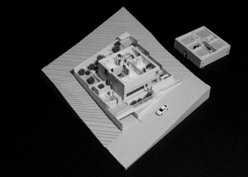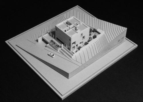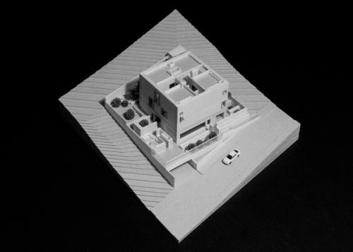 The project is a proposal for a single-family house in Jordan, presented to the client in late 2020. The site is located in Marj Al-Hamam, in the southwestern suburb of the city of Amman. It is designed on a total site area of 1032 sqm, which overlooks the western realm of Amman. It endeavors to create an intimate spatial dialogue between its inner spaces, and a functional one with the terrain. These informed the arrangement of functions around an open-air room, the epicenter of the house, a provision of the sky and air into the residence’s three stories.