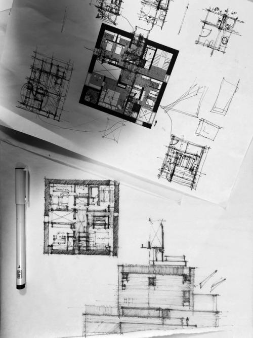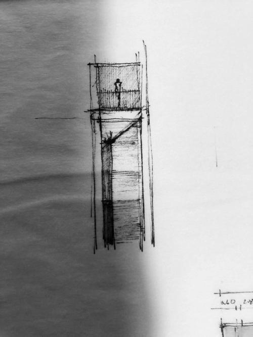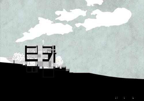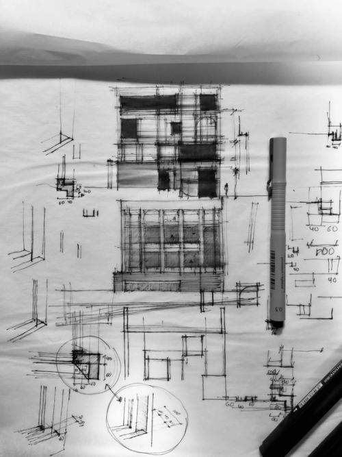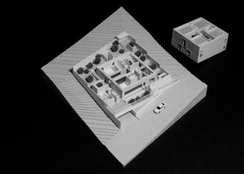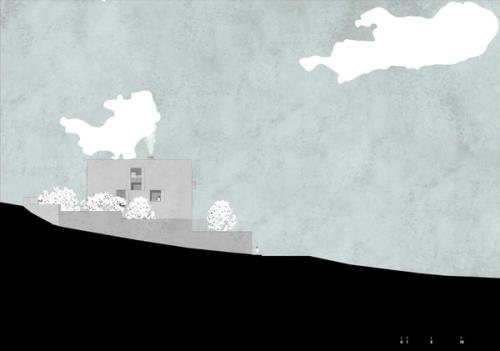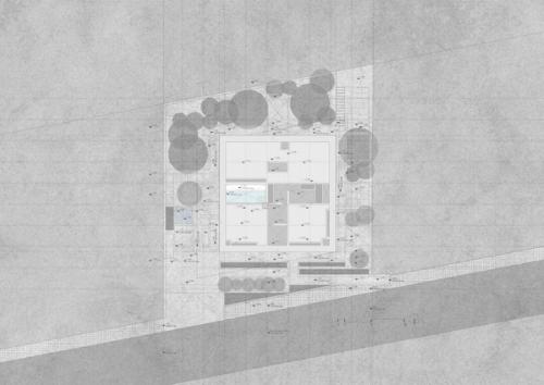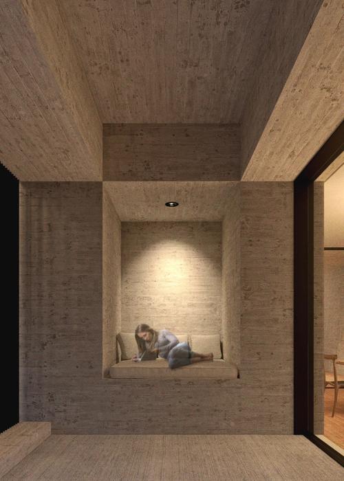 “Timelessness and Time”. A strive for Timelessness by appropriating the simplest of apertures and lines, and a rather cubic form that can belong to any period. Aesthetics on the other hand are yet to be discovered. The choice of the earthy colored unfinished formwork concrete will allow material-richness to be attained in Time. Weathering is anticipated but not designed. The visual connection to the opposite cityscape is to be minimal, foreseeing that future developments will eventually block the view. Hence, the design only provides orifices on the upper floors that frame selected scenes, which in turn gives away the architecture’s solid and brute image.