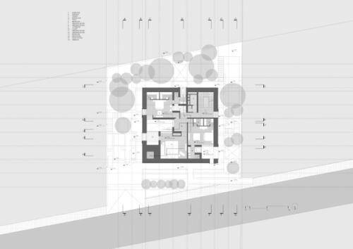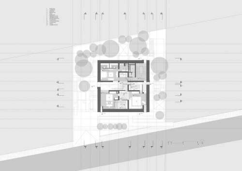 “Timelessness and Time”. A strive for Timelessness by appropriating the simplest of apertures and lines, and a rather cubic form that can belong to any period. Aesthetics on the other hand are yet to be discovered. The choice of the earthy colored unfinished formwork concrete will allow material-richness to be attained in Time. Weathering is anticipated but not designed. The visual connection to the opposite cityscape is to be minimal, foreseeing that future developments will eventually block the view. Hence, the design only provides orifices on the upper floors that frame selected scenes, which in turn gives away the architecture’s solid and brute image.
